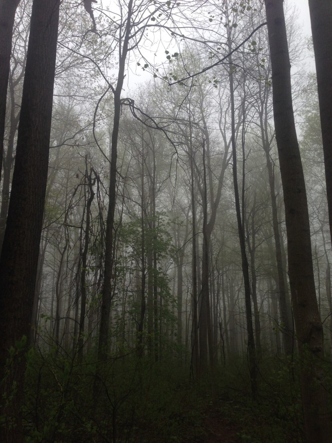 April 24th was a standard hiker workday. Woke early, walked solo through a smothering mountain fog with rain jacket on then off then on then off, all day breathing air drunk with the smell of earth and pine needles and something like crushed hemlock.